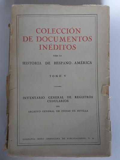 Interesante recopilación de un inventario general de registros cedularios del Archivo General de Indias de Sevilla. Libro intonso. Con ocho láminas fotográficas a plena página fuera de texto.
